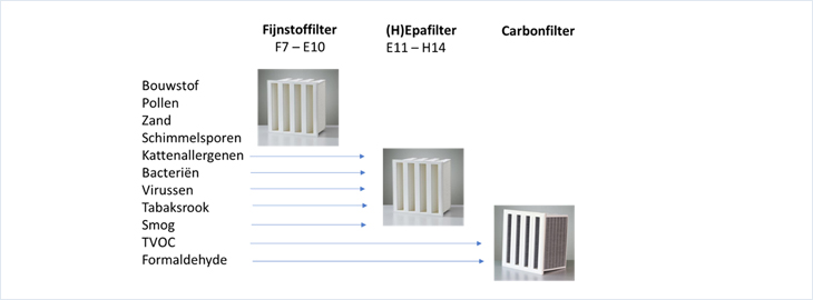 H13 Hepafilters vinden we vooral terug in de zorg of bij cleanrooms. Steeds meer organisaties worden bewust van het belang van goede luchtkwaliteit en dit stut de vraag naar Hepa luchtreinigers en H13 luchtfilters ingebouwd in ventilatiesystemen. Met de zeer fijnmazige filters zijn alleen de Hepafilters de enige luchtfilters die een goede preventie bieden tegen virussen en bacteriën. De stofdeeltjes zijn zo klein dat deze niet gefilterd kunnen worden door een F7-F9 luchtfilter:- Indicatie stofdeeltjes grootte van virussen: 0,01 µm - 0,1 µm